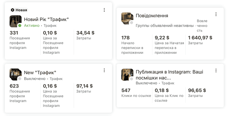 Результаты рекламных кампаний